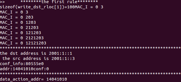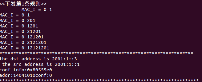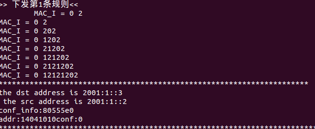 BV算法是NetMagic08软件适配代码的一部分,它主要负责把floodlight控制器下发的规则通过NMAC协议,下发到硬件中。下面是NetMagic08软件适配代码给硬件下发规则时的打印信息截图: