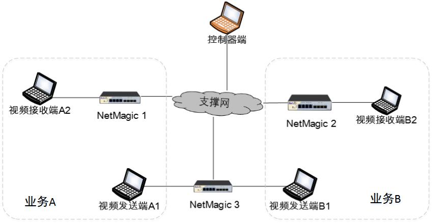 (3)2号NetMagic08设备的1号端口连接主机B2(作为视频接收端);