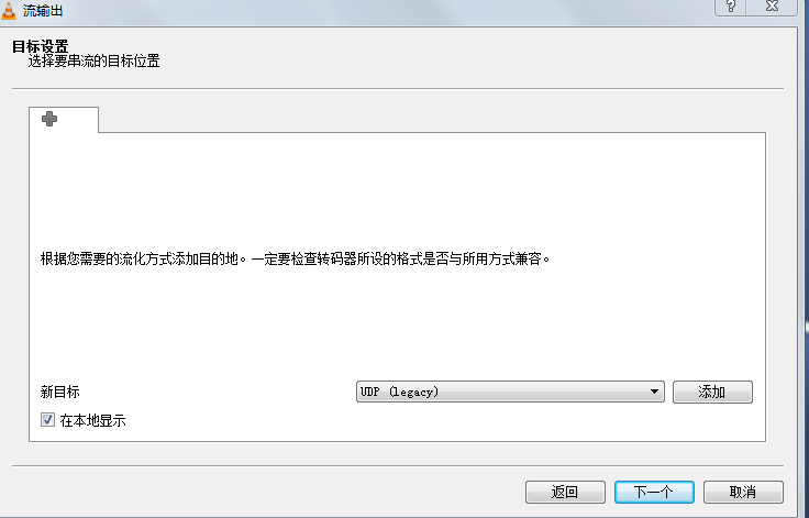 (3)点击【下一个】,在进入的界面中勾选【在本地显示】,选择UDP方式,如图所示: